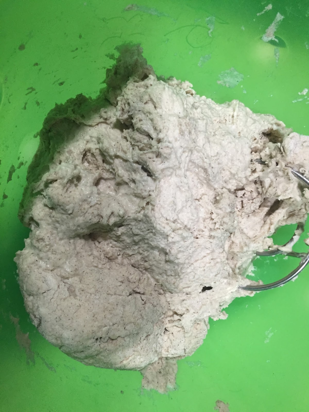 Desde que la Sra. Cuinetes me presentó a dicha harina no ha dejado de ser mi obsesión y mi frustración, pan que hacía con ella, galleta* al canto . Y esto por qué ? Pues bien, yo creo que por dos motivos, uno de ellos es que no tiene nada de gluten, por tanto no contribuye al desarrollo de la estructura del pan, y por otro que esta harina es extremadamente hidrófila, es decir ávida de agua y por tanto le «roba» agua al resto de harinas, como el gluten necesita del agua para formase y el sarraceno se la roba tendremos problemas para desarrollar el gluten. Poner mas agua tampoco ayuda mucho, mi opción fue disminuir ligeramente la cantidad de agua, y usar harina extra para amasar y formar en lugar de usar agua.