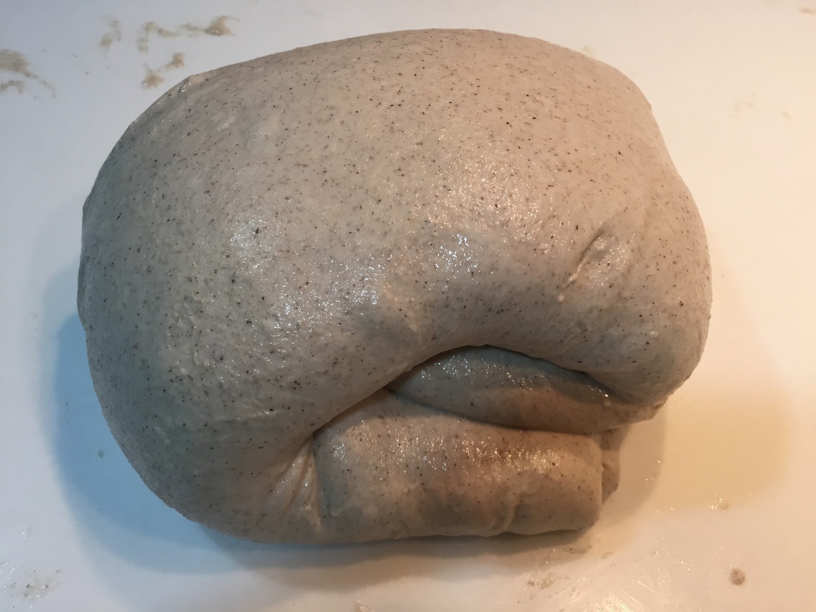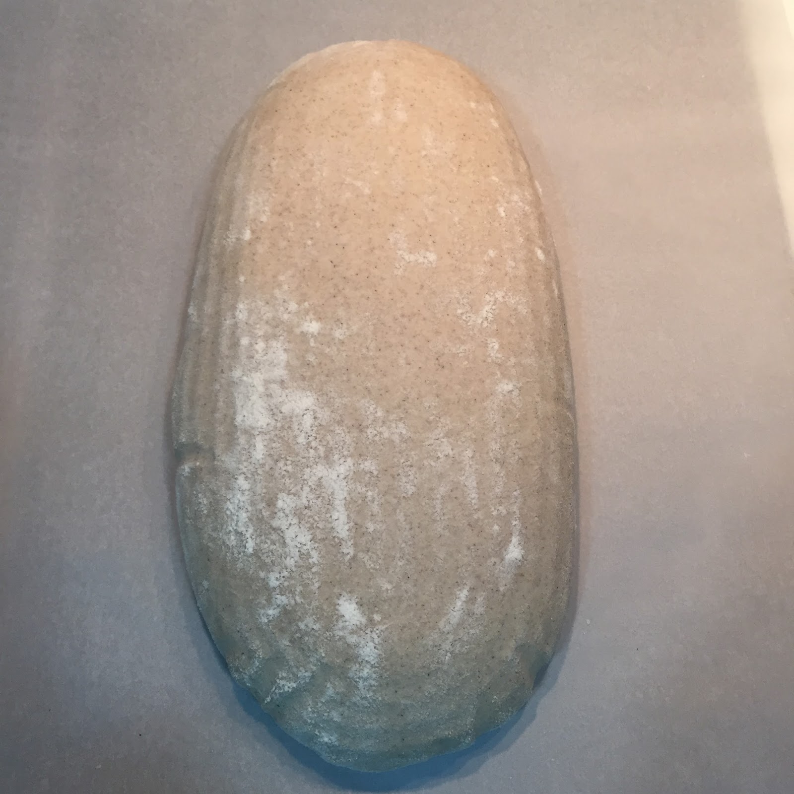 - Formamos (yo hice un único batârd) de nuevo ayudándonos con la harina blanca necesaria y pasamos al baneton, tapando con paño y bolsa cerrada.